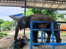 วันที่ 24 กรกฎาคม 2567 นายสัตวแพทย์อภิชัย นาคีสังข์ ปศุสัตว์จังหวัดสุรินทร์ ได้มอบหมายให้ นายสัตวแพทย์จรูญวิทย์ นะพรรัมย์ หัวหน้ากลุ่มพัฒนาสุขภาพสัตว์ ลงพื้นที่ตรวจเยี่ยมการจัดการสุขภาพและตรวจรักษาช้าง ร่วมกับสถาบันวิจัยและบริการสุขภาพช้างแห่งชาติ สุรินทร์ กรณี"สีดอขุนทรัพย์ "ช้างสีดอขุนทรัพย์ เพศผู้ อายุ 31 ปี เจ้าของคือนายธีรพันธ์ นามขันธ์ บ้านเลขที่ 109 หมู่ 14 บ้านโคกระกา ตำบลกระโพอำเภอท่าตูม จังหวัดสุรินทร์ ซึ่งมีข้อห่วงใยจากสื่อสังคมออนไลน์เรื่องสุขภาพ เบื้องต้นพบว่าสีดอขุนทรัพย์มีประวัติการเจ็บป่วยเคยรักษาจากจังหวัดกระบี่จากกรณีตกเขาเมื่อหลายปีที่ผ่านมา มีปัญหาเรื่องโครงสร้างร่างกายเดินได้ไม่เป็นปกติ ล่าสุดล้มนอนลุกไม่ได้ด้วยตนเองเมื่อประมาณ 2 สัปดาห์ก่อน 11 กรกฎาคม 2567 ได้รับการดูแลรักษาโดยทีมสัตวแพทย์สถาบันวิจัยและบริการสุขภาพช้างแห่งชาติ จังหวัดสุรินทร์ ปัจจุบันจากการสังเกตอาการ ช้างมีอาการแจ่มใสขึ้น กินอาหารได้ดี ตอบสนองต่อสิ่งแวดล้อมดี ฝีที่แก้มซ้าย สะโพกซ้ายและขวา และข้อศอกซ้าย ขาซ้ายบวม ซึ่งจากการตรวจสอบยังไม่พร้อมในการที่จะทำการเปิดแผลชำระฝีหนอง พยากรณ์การวางแผนรักษาประมาณอีก 1-2 สัปดาห์ หางมีแผลจากการติดเชื้อและปรสิต ได้ทำการรักษาโดยการล้างแผลและทาครีมรักษาบาดแผลและกำจัดปรสิต ได้ให้สารน้ำและวิตามินบำรุงร่างกายทางกระแสเลือดบริเวณตำแหน่งใบหูซ้าย และได้ให้คำแนะนำการดูแลรักษาสุขภาพช้างแก่ผู้ที่ดูแลเพื่อให้ช้างได้รับการดูแลรักษาอย่างต่อเนื่องต่อไป