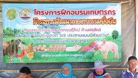 วันที่ 15 สิงหาคม 2567 นายสัตวแพทย์อภิชัย นาคีสังข์ ปศุสัตว์จังหวัดสุรินทร์ มอบหมายให้นายณรงค์ ศิริดล นักวิชาการสัตวบาลปฏิบัติการ นางนงนุช พรรคฐิน นักวิชาการสัตวบาลปฏิบัติการ สพ.ญ.ฐายิกา คล้ายบุตร นายสัตวแพทย์ปฏิบัติการ และเจ้าหน้าที่กลุ่มส่งเสริมและพัฒนาการปศุสัตว์ พร้อมด้วย นายศิวเทพ วงศ์พรหม ปศุสัตว์อำเภอสังขะ ฝึกอบรมเกษตรกรกิจกรรมส่งเสริมเกษตรทฤษฎีใหม่ด้านปศุสัตว์ “หลักสูตรจัดประชุมเวที 3/5 ประสานแบบมีส่วนร่วม”ประจำปีงบประมาณ พ.ศ. 2567 ณ ศูนย์เรียนรู้ของนายไกรศร จังอินทร์ ตำบลทับทัน อำเภอสังขะ จังหวัดสุรินทร์ เพื่อส่งเสริมให้เกิดเวทีแลกเปลี่ยนเรียนรู้ การประยุกต์ใช้หลักปรัชญาของเศรษฐกิจพอเพียงกับการทำเกษตรทฤษฎีใหม่ ของชุมชน ในพื้นที่หมู่ที่ 2 หมู่ที่ 4 ตำบลทับทัน อำเภอสังขะ จังหวัดสุรินทร์