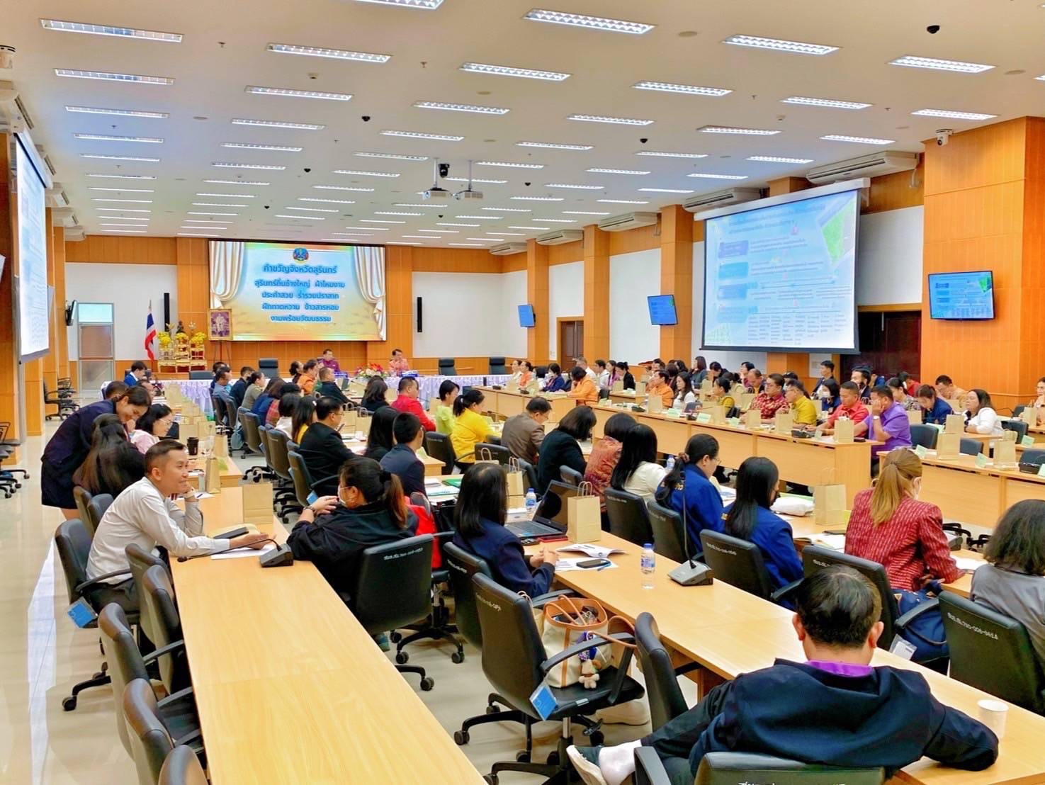 วันที่ 20 กุมภาพันธ์ 2568 เวลา 9.00 น. นายอภิชัย นาคีสังข์ ปศุสัตว์จังหวัดสุรินทร์ พร้อมด้วยนางสาว ปิยชนก ธนเกียรติสกุล นายสัตวแพทย์ปฏิบัติการ และ นายสุภาพ มีโชค นักวิชาการสัตวบาล เข้าร่วมประชุมมอบนโยบายการจัดทำแผนพัฒนาจังหวัดสุรินทร์ ฉบับทบทวน ปี 2570 และแผนปฎิบัติราชการประจำปีของจังหวัดสุรินทร์ ประจำปีงบประมาณ พ.ศ. 2570 การประชุมได้มีการนำเสนอนโยบาย หลักเกณฑ์ และวิธีการจัดทำแผนพัฒนาจังหวัดและแผนพัฒนากลุ่มจังหวัด ปี พ.ศ. 2566- 2570 ยุทธศาสตร์ชาติ 20 ปี ยุทธศาสตร์การพัฒนาภาคตะวันออกเฉียงเหนือ และกรอบการจัดสรรงบประมาณ แนวทางการจัดเสนอโครงการฯ และข้อเสนอที่ควรได้รับการพัฒนาของจังหวัดสุรินทร์ ทั้งด้านเกษตร ด้านเศรษฐกิจด้านการท่องเที่ยวและกีฬา ด้านการบริหารจัดการทรัพยากรธรรมชาติและสิ่งแวดล้อม รวมไปถึงการยกระดับคุณภาพชีวิตของประชาชนให้มีความมั่นคงปลอดภัย ปศุสัตว์จังหวัดสุรินทร์ได้ดำเนินการขับเคลื่อนโครงการที่เกี่ยวกับการยกระดับเนื้อสุรินทร์สู่มาตรฐานสากล กิจกรรมการจัดสร้างห้องบ่มซาก ห้องตกแต่ง และแปรรูปผลิตภัณฑ์ และการส่งเสริมพัฒนาไก่พื้นเมืองสู่การส่งออก ตลอดจนการส่งเสริมตลาดสินค้าปศุสัตว์ ฯลฯ ณ ห้องประชุมช้างใหญ่ ชั้น 4 ศาลากลางจังหวัดสุรินทร์ ในการนี้ นายชำนาญ ชื่นตา ผู้ว่าราชการจังหวัดสุรินทร์ เป็นประธานในการประชุม