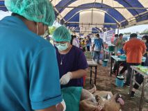 วันที่ ๑๘ เมษายน ๒๕๖๘ นายสัตวแพทย์อภิชัย นาคีสังข์ ปศุสัตว์จังหวัดสุรินทร์ มอบหมายให้นายสัตวแพทย์จรูญวิทย์ นะพรรัมย์ หัวหน้ากลุ่มพัฒนาสุขภาพสัตว์ นายเผ่าพันธุ์ จิรเศรษฐเมธากุล ปศุสัตว์อำเภอชุมพลบุรี เจ้าหน้าที่กลุ่มพัฒนาสุขภาพสัตว์ สำนักงานปศุสัตว์จังหวัดสุรินทร์ และสำนักงานปศุสัตว์อำเภอชุมพลบุรีร่วมกิจกรรมออกหน่วยโครงการจังหวัดสุรินทร์สร้างสุข สร้างรอยยิ้ม และโครงการเหล่ากาชาดห่วงใยสร้างบ้านผู้ยากไร้และด้อยโอกาสเฉลิมพระเกียรติฯ ประจำปีงบประมาณ พ.ศ.2568ในพื้นที่อำเภอชุมพลบุรี ณ โรงเรียนบ้านสำโรง ตำบลศรีณรงค์ อำเภอชุมพลบุรี จังหวัดสุรินทร์ โดยมีนายชำนาญ ชื่นตา ผู้ว่าราชการจังหวัดสุรินทร์ เป็นประธานโดยสำนักงานปศุสัตว์จังหวัดสุรินทร์ มอบเวชภัณฑ์สัตว์ จำนวน 2 ชุด ให้แก่นายกองค์การบริหารส่วนตำบลศรีณรงค์และออกหน่วยบริการผ่าตัดทำหมัน ฉีดวัคซีนป้องกันโรคพิษสุนัขบ้าแก่สุนัขและแมวด้อยโอกาสในพื้นที่ ให้คำปรึกษาเกี่ยวกับการดูแลสุขภาพสัตว์เลี้ยงและปศุสัตว์ร่วมกับศูนย์วิจัยและพัฒนาการสัตวแพทย์ภาคตะวันออกเฉียงเหนือตอนล่างจังหวัดสุรินทร์ ทั้งนี้ โครงการสร้างสุขสร้างรอยยิ้ม เป็นโครงการที่หน่วยงานภาครัฐ ภาคเอกชน บูรณาการลงพื้นที่เพื่อให้พี่น้องประชาชนที่อยู่ห่างไกลได้รับบริการอย่างสะดวก นอกจากนั้นยังร่วมมอบบ้านผู้ยากไร้ในโครงการเหล่ากาชาดห่วงใยสร้างบ้านผู้ยากไร้และด้อยโอกาสเฉลิมพระเกียรติสมเด็จพระกนิษฐาธิราชเจ้า กรมสมเด็จพระเทพรัตนราชสุดาฯ สยามบรมราชกุมารี ประจำปีงบประมาณ พ.ศ.2567 ให้แก่ นางหนูพุก เกลี้ยงสำเภา บ้านเลขที่ 24 หมู่ที่ 8 ตำบลศรีณรงค์ อำเภอชุมพลบุรี จังหวัดสุรินทร์ โดยสำนักงานปศุสัตว์จังหวัดสุรินทร์ และปศุสัตว์อำเภอชุมพลบุรี มอบไก่พันธุ์พื้นเมืองพร้อมเวชภัณฑ์สัตว์ จำนวน 1 ชุด และไข่ไก่เพื่อบริโภคในครอบครัว