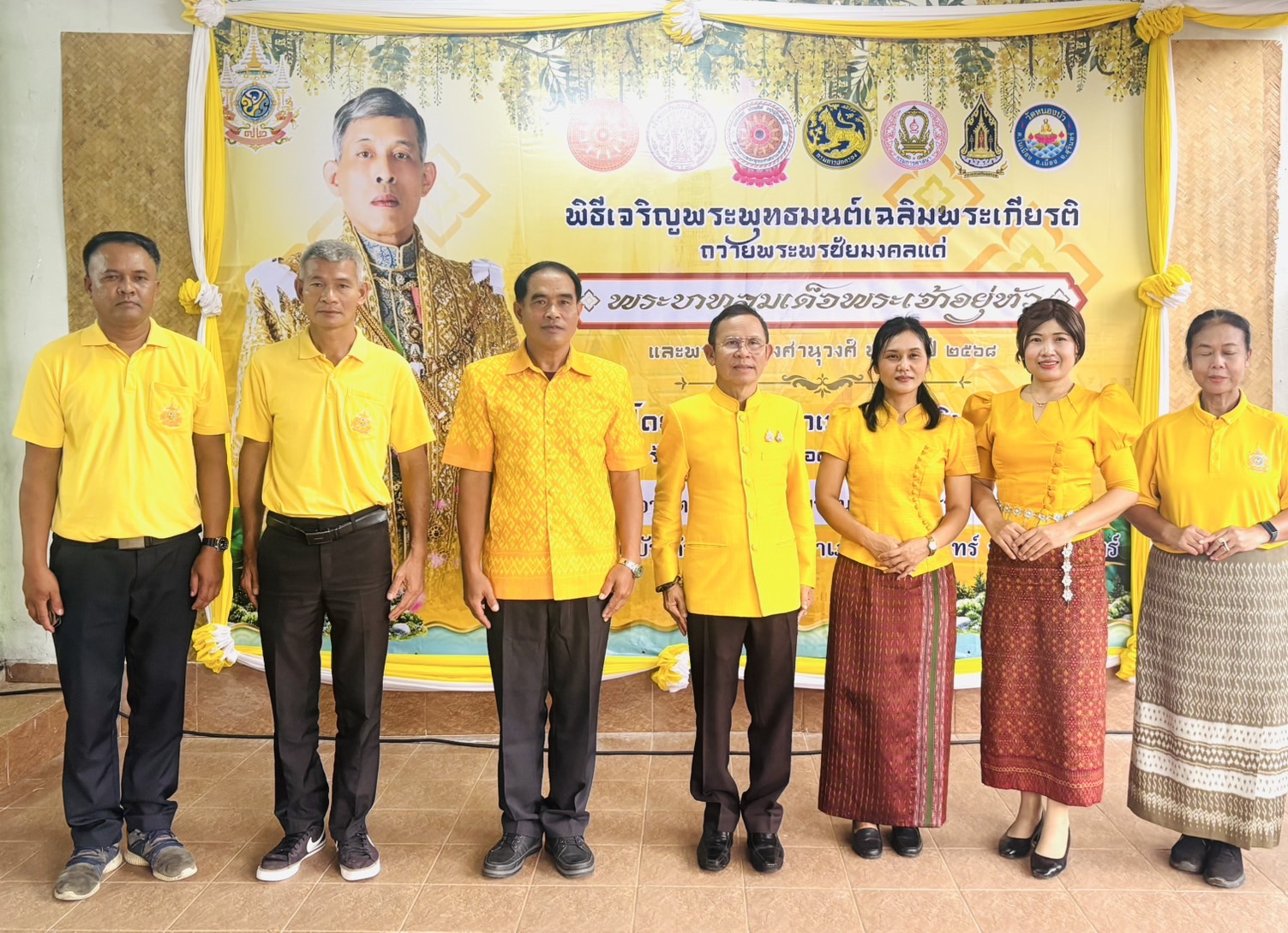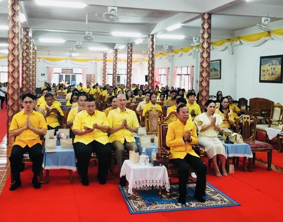 วันอาทิตย์ ที่ 27 กันยายน 2568 เวลา 15.00 น.  นายอภิชัย นาคีสังข์  ปศุสัตว์จังหวัดสุรินทร์ มอบหมายให้ นายณรงค์ ศิริดล นักวิชาการสัตวบาลปฏิบัติการ นางนงนุช  พรรคฐิน นักวิชาการสัตวบาลปฏิบัติการและเจ้าหน้าที่กลุ่มส่งเสริมและพัฒนาการปศุสัตว์ พร้อม เจ้าหน้าที่ส่วนราชการ ข้าราชการ ร่วมพิธีเจริญพระพุทธมนต์ถวายพระพรชัยมงคลแด่พระบาทสมเด็จพระเจ้าอยู่หัว และพระบรมวงศานุวงศ์ ประจำปีพุทธศักราช 2568 ณ วัดหนองบัว ตำบลในเมือง อำเภอเมืองสุรินทร์ จังหวัดสุรินทร์ โดยมีการสวมชุดสุภาพโทนสีเหลือง เพื่อเจริญจิตตภาวนา ถวายเป็นพระราชกุศล