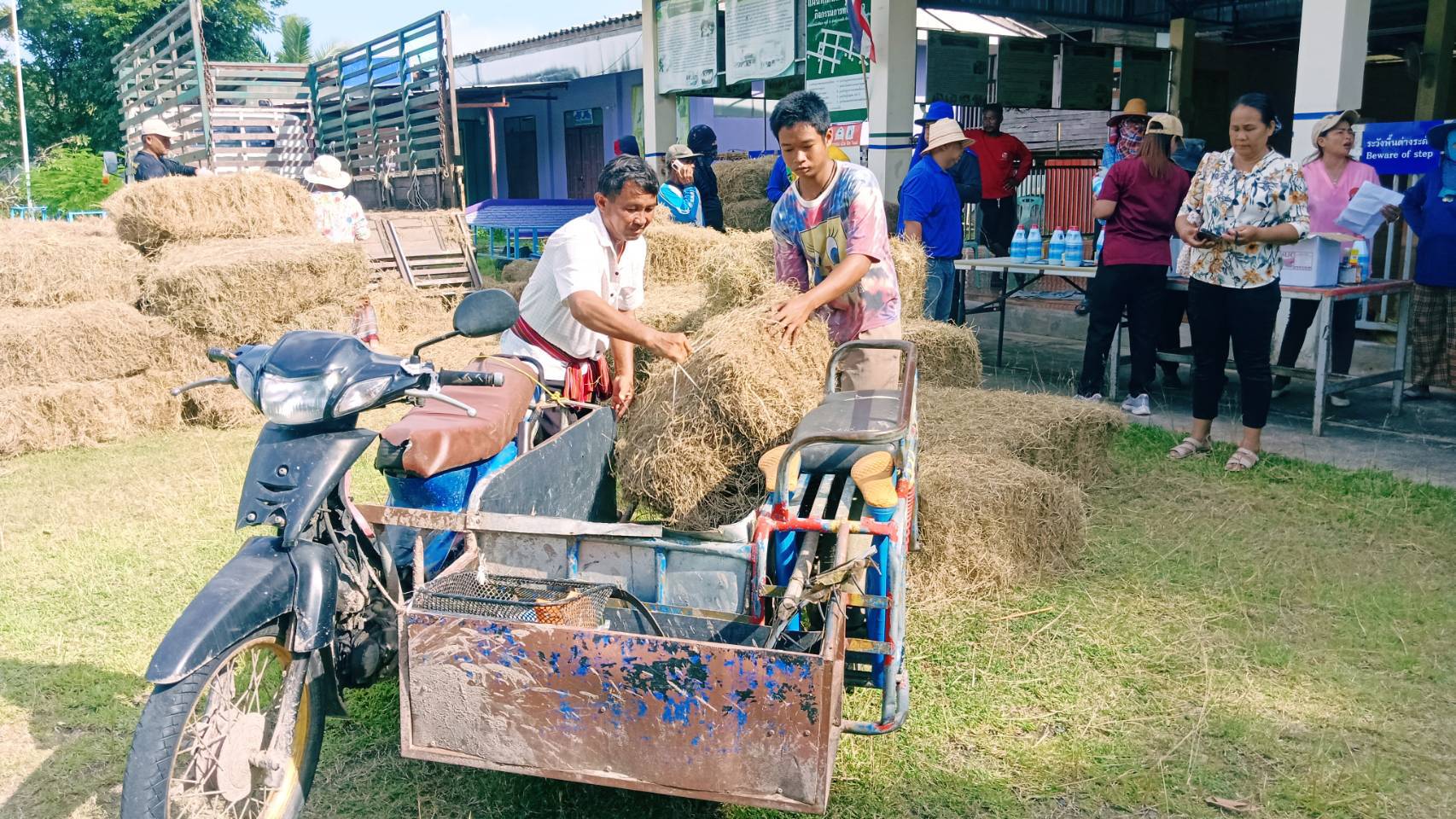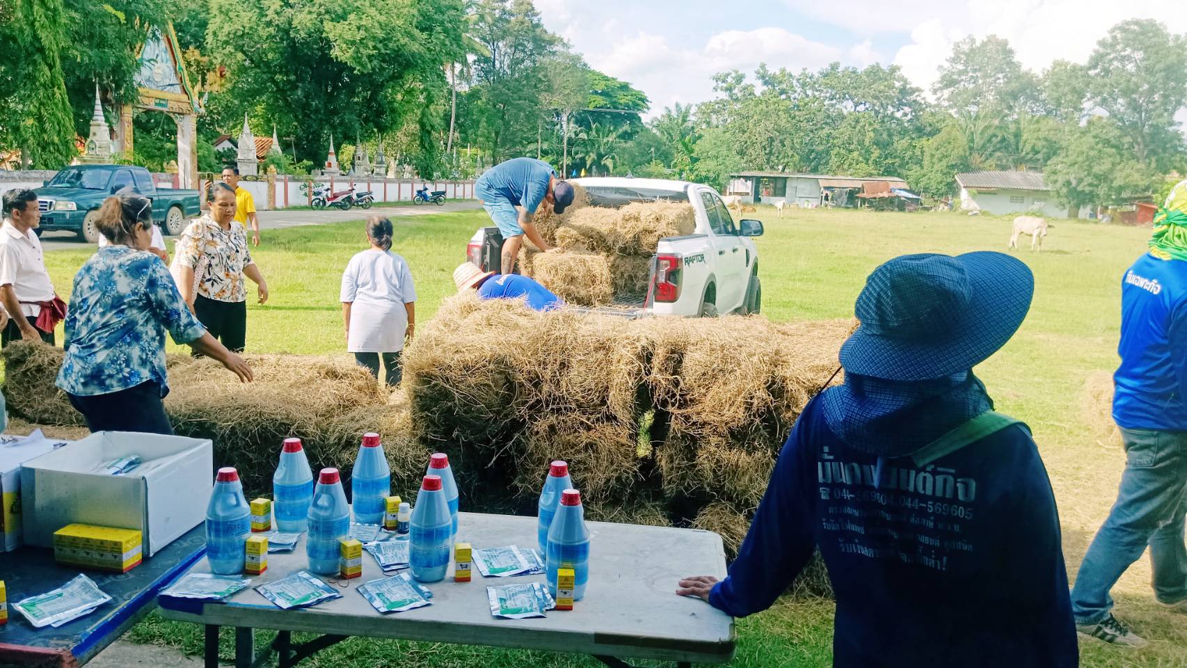 วันอังคารที่ 7 ตุลาคม 2568 เวลา 15.00 น. นางสาวมลทยา สมนาค ปศุสัตว์อำเภอสำโรงทาบ พร้อมด้วย นายประยุทธ วงเวียน เจ้าพนักงานสัตวบาล นางปัญญาพร แสนศิริ จ้างเหมาบริการช่วยงานด้านสัตวแพทย์ และนางสาวณัฐราพร เภาพาส อาสาปศุสัตว์อำเภอสำโรงทาบ ลงพื้นที่มอบเสบียงอาหารสัตว์หญ้าแห้ง แร่ธาตุก้อน วิตามิน และเวชภัณฑ์ด้านปศุสัตว์ ให้แก่เกษตรกรที่ได้รับผลกระทบจากภัยพิบัติ (อุทกภัย) ด้านปศุสัตว์ เพื่อบรรเทาความเดือดร้อนแก่เกษตรกรผู้เลี้ยงสัตว์ โดยมีเกษตรกรที่ได้รับผลกระทบดังกล่าว ทั้งสิ้น จำนวน 51 ราย โคเนื้อ จำนวน 299 ตัว กระบือ จำนวน 84 ตัว ม้า 3 ตัว รวมสัตว์ทั้งสิ้น จำนวน 386 ตัว มอบเสบียงอาหารสัตว์หญ้าแห้ง จำนวน 3,000 กิโลกรัม (150 ฟ่อน) เป็นเกษตรกรในพื้นที่ตำบลเกาะแก้ว และตำบลสำโรงทาบ อำเภอสำโรงทาบ จังหวัดสุรินทร์ ทั้งนี้ ยังไม่ได้รับรายงานสัตว์ตายหรือสูญหายจากภัยพิบัติ (อุทกภัย) ดังกล่าว
