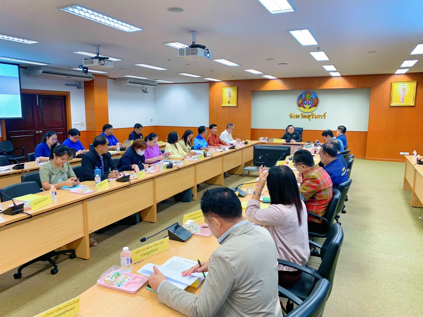 วันที่ 9 ตุลาคม 2568 เวลา 09.00 น. นายสัตวแพทย์อภิชัย นาคีสังข์ ปศุสัตว์จังหวัดสุรินทร์ มอบหมายให้ นางสาวกนกอร พันทอง นักวิชาการสัตวบาล ร่วมประชุมคณะอนุกรรมการประสานงานโครงการพัฒนาของสถาบันส่งเสริมและพัฒนากิจกรรมปิดทองหลังพระสืบสานแนวพระราชดำริ ประจำจังหวัดสุรินทร์ ครั้งที่ 3/2568 ณ ห้องประชุมข้าวสารหอม ชั้น 2 ศูนย์ราชการจังหวัดสุรินทร์ เพื่อพิจารณาการดำเนินโครงการซ่อมแซมและเสริมศักยภาพประจำปี 2569 และการเตรียมดำเนินโครงการฯ ประจำปี 2570, การขับเคลื่อนผลการสำรวจโครงการซ่อมแซมแหล่งน้ำขนาดเล็กของส่วนราชการที่ยังไม่ได้ถ่ายโอนให้กับองค์กรปกครองส่วนท้องถิ่น ปี 2567-2568, แนวทางการต่อยอดการพัฒนาโครงการซ่อมแซมเสริมศักยภาพแหล่งน้ำขนาดเล็ก ประจำปี 2569 และแนวทางการบูรณาการแผนงาน/โครงการ ร่วมกับ กระทรวงมหาดไทย และกระทรวงทรัพยากรธรรมชาติและสิ่งแวดล้อม ประจำปีงบประมาณ 2569 โดยมี นายกิตติ สัตย์ซื่อ ปลัดจังหวัดสุรินทร์ เป็นประธาน