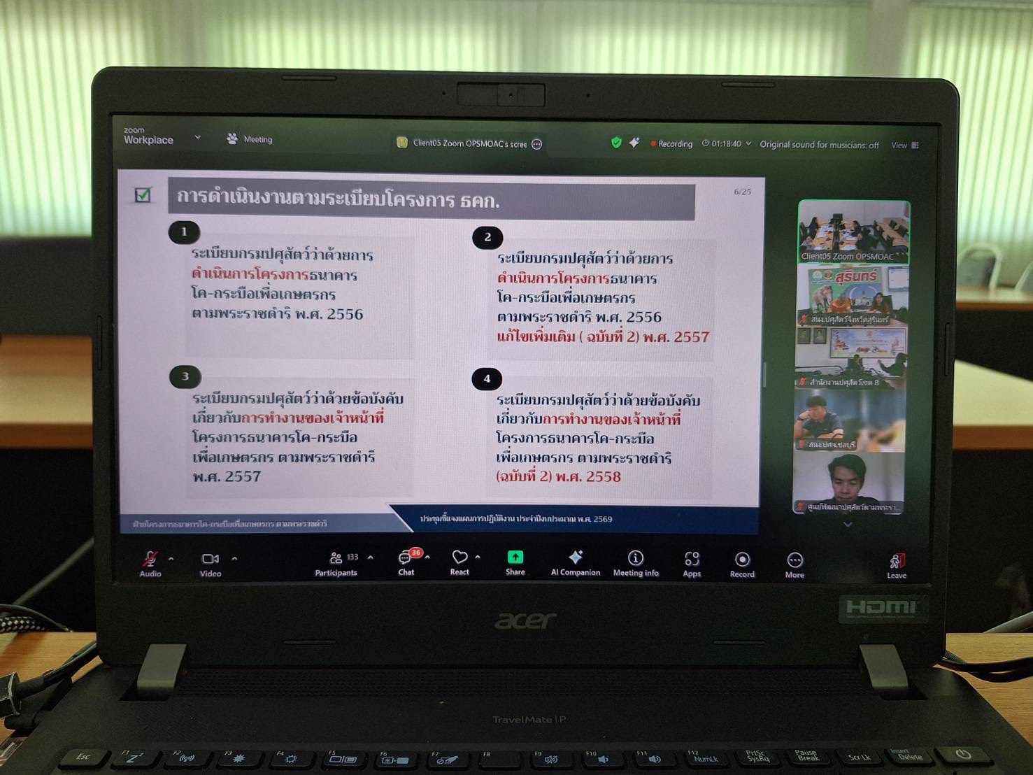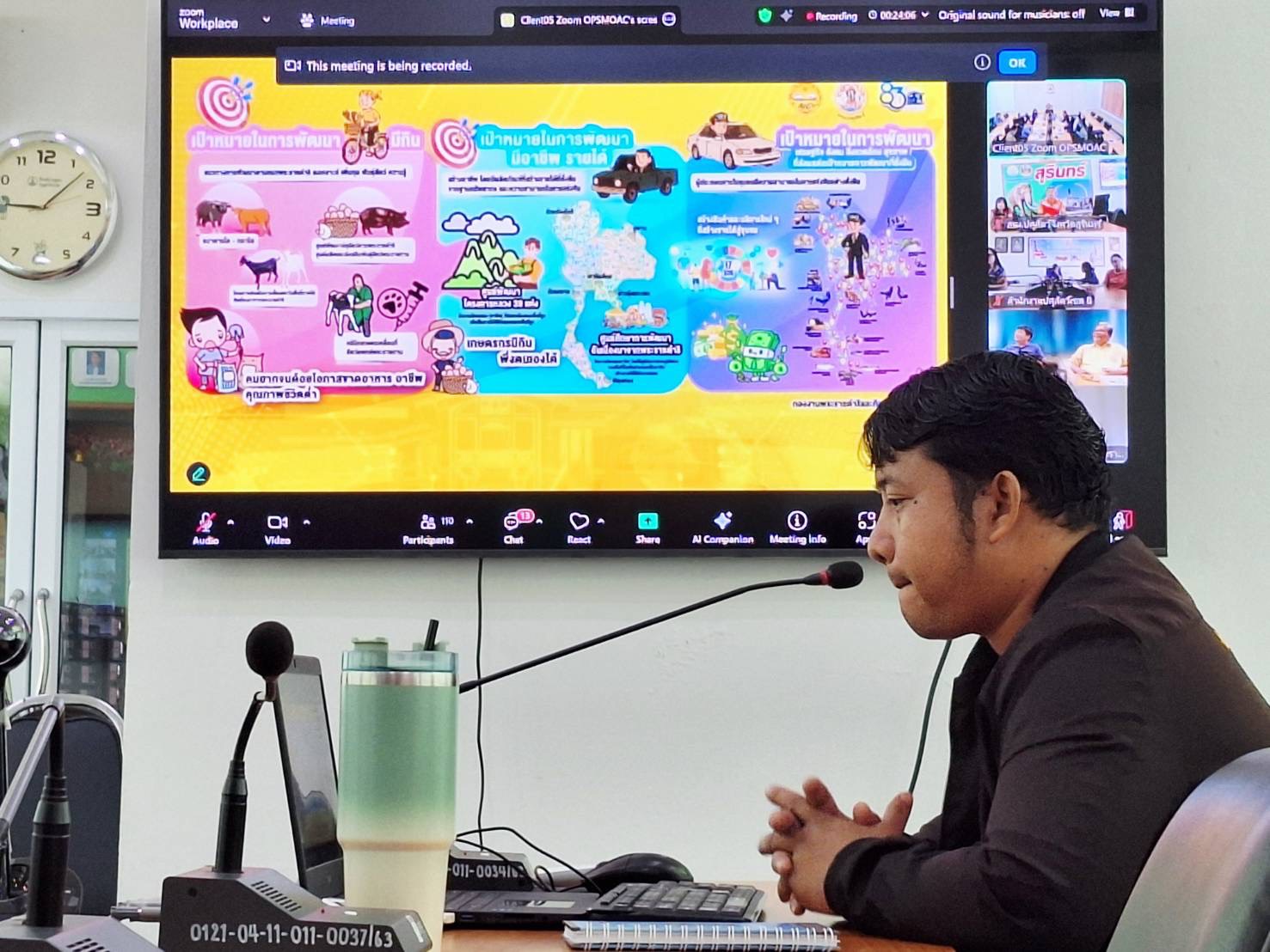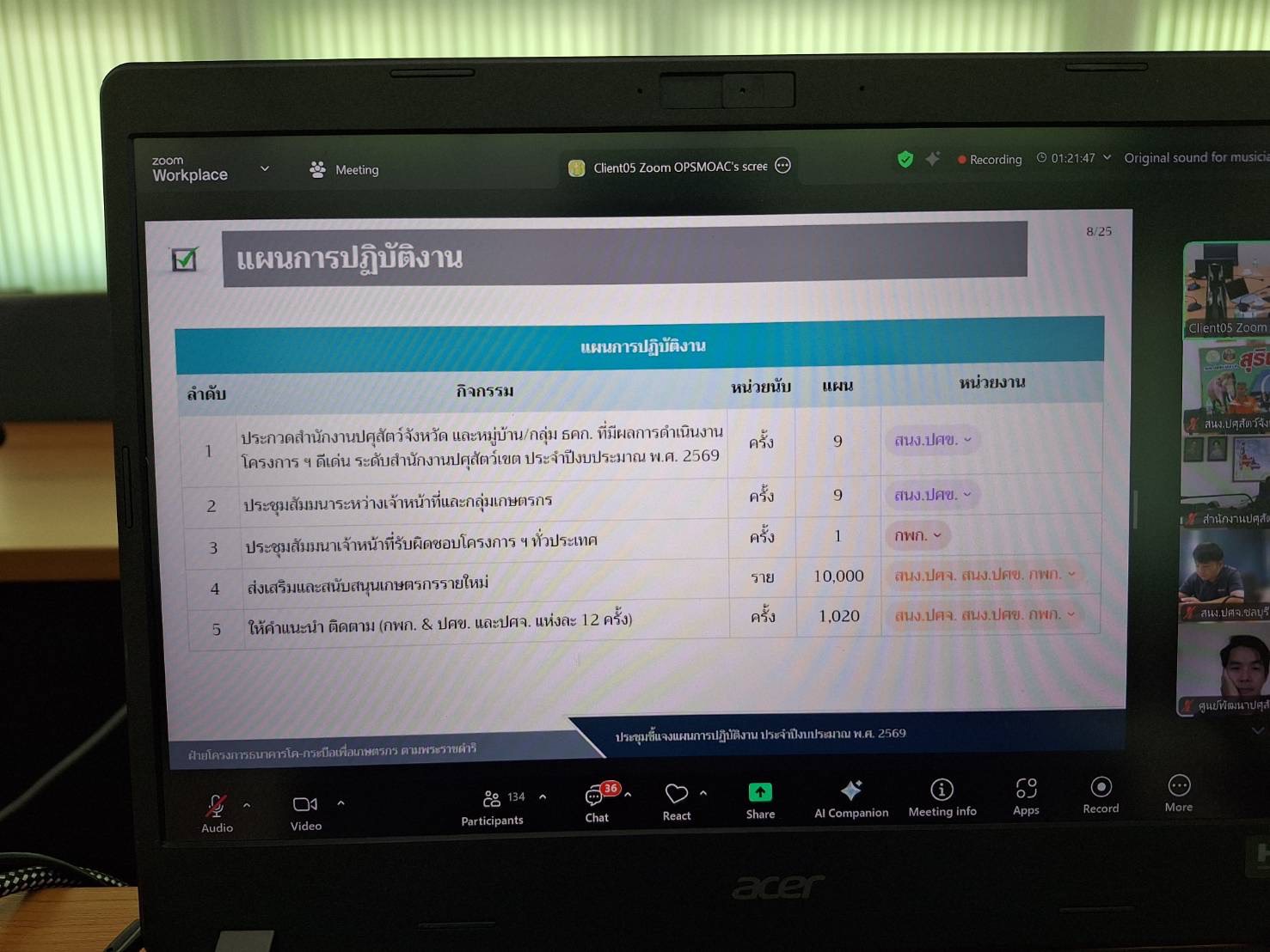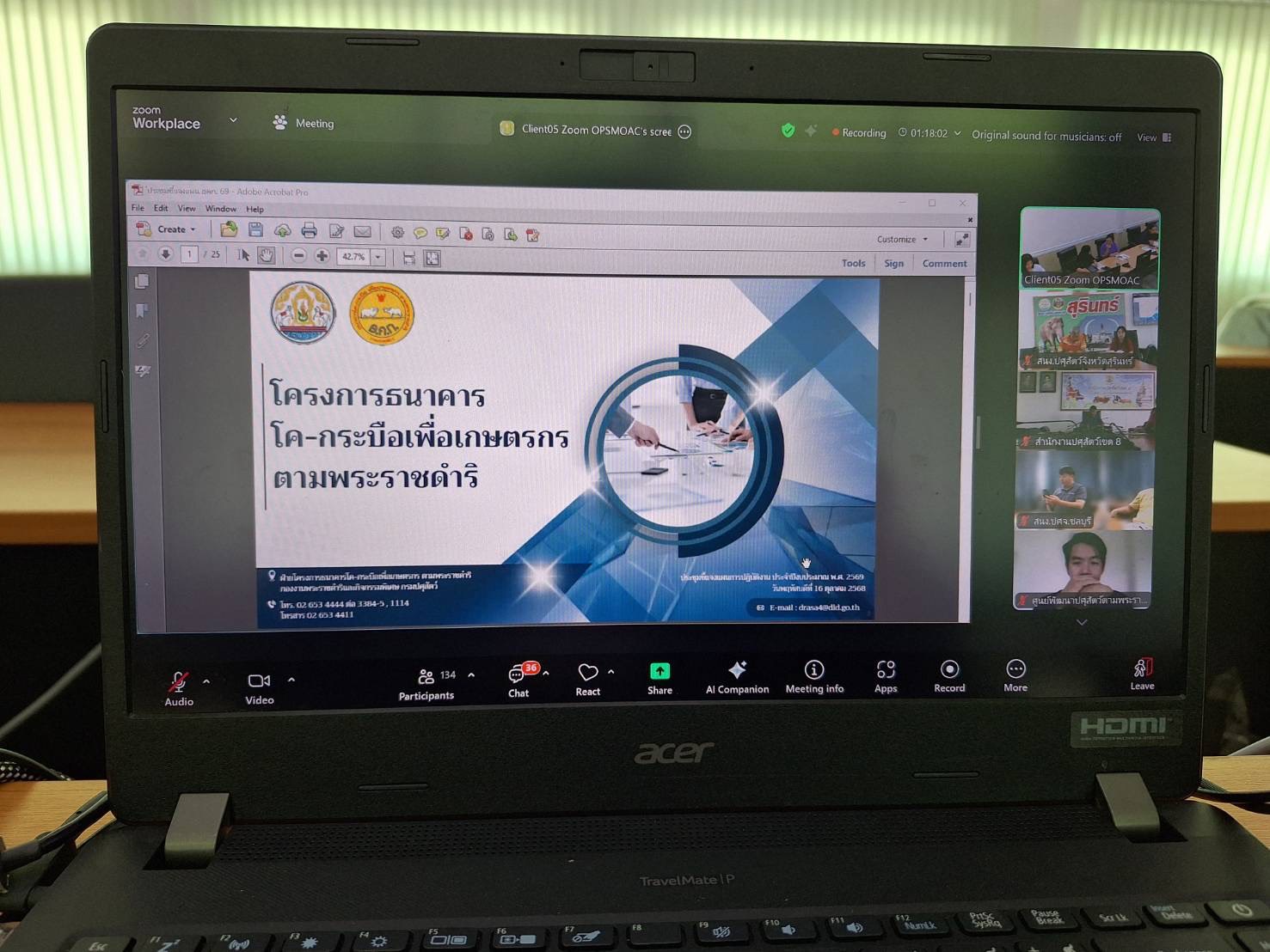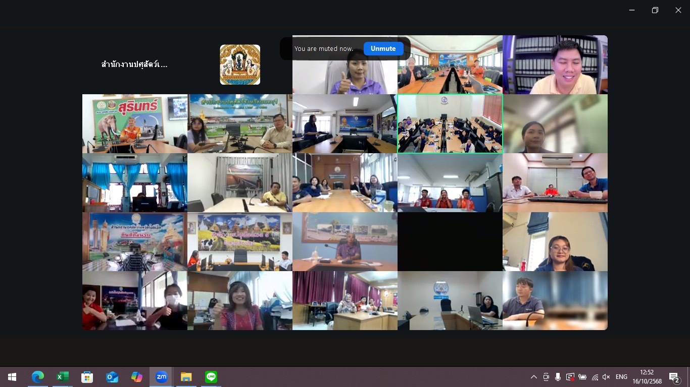 วันที่ 16 ตุลาคม 2568 นายสัตวแพทย์อภิชัย นาคีสังข์ ปศุสัตว์จังหวัดสุนทร์ มอบหมายให้ นายณรงค์ ศิริดล นักวิชาการสัตวบาลปฏิบัติการ นางนงนุช พรรคฐิน นักวิชาการสัตวบาลปฏิบัติการ สพ.ญ.ฐายิกา คล้ายบุตร นายสัตวแพทย์ปฏิบัติการ นายวรโชติ ฉัตรไธสง เจ้าหน้าที่ ธ.ค.ก เข้าร่วมประชุมชี้แจงแผนงานกองงานพระราชดำริ ประจำปีงบประมาณ 2569 โดยมีโครงการเกษตรทฤษฎีใหม่ โครงการ ธ.ค.ก โครงการคลินิกเกษตรเคลื่อนที่ฯ และกิจกรรมหลัก กิจกรรมย่อยอื่นๆ รวมทั้งโครงการพื้นที่เฉพาะฯ เพื่อให้การขับเคลื่อนในเรื่องแผนการดำเนินการตามเป้าหมายและแผนงาน รวมทั้งผลการดำเนินงานโครงการต่างๆในพื้นที่การดำเนินงานตามเป้าหมายแต่ละจังหวัดและเพื่อนำมาประยุกต์ใช้ ให้เกิดการยกระดับคุณภาพชีวิตที่ดี ผ่านระบบ zoom ณ ห้องประชุมสำนักงานปศุสัตว์จังหวัดสุรินทร์ อำเภอเมือง จังหวัดสุรินทร์ ในการนี้ ได้รับเกียรติจาก  นายธีรวิทย์ ขาวบุปผา ผู้อำนวยการกองการพระราชดำริและกิจกรรมพิเศษ ให้เกียรติเป็นประธานฯ ในการชี้แจงแผนงานครั้งนี้ด้วย