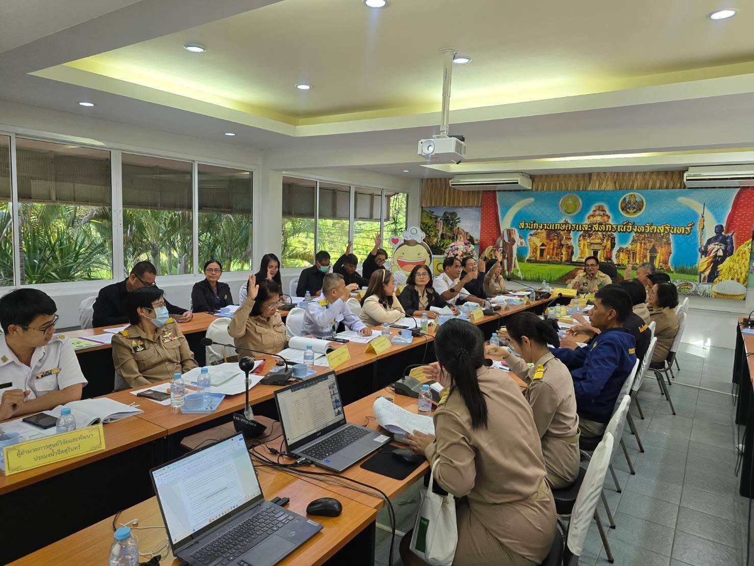 วันที่ 17 พฤศจิกายน 2568 เวลา 13.30 น. นายสัตวแพทย์อภิชัย นาคีสังข์ ปศุสัตว์จังหวัดสุรินทร์ มอบหมายให้นางสาวรสรินทร์ พรมตู้ เจ้าพนักงานสัตวบาลชำนาญงาน และนางสาวกนกอร พันทอง นักวิชาการสัตวบาล  เข้าร่วมประชุมคณะกรรมการขับเคลื่อนงานด้านการเกษตรจังหวัดสุรินทร์ ครั้งที่ 7/2568  ณ ห้องประชุมสำนักงานเกษตรและสหกรณ์จังหวัดสุรินทร์  เพื่อพิจารณาการจัดทำปฏิทินผลผลิตสินค้าเกษตรรายเดือนระดับจังหวัด ประจำปี 2568, โครงการสินค้าเกษตรและบริการมูลค่าสูง 1 ท้องถิ่น 1 สินค้าเกษตรมูลค่าสูง ประจำปีงบประมาณ พ.ศ. 2569, การเตรียมความพร้อมในการจัดกิจกรรม “Green Gain Day” สร้างการเรียนรู้และสร้างแรงจูงใจ “ไม่เผาแต่ได้รายได้” ภายใต้โครงการส่งเสริมการเกษตรที่เป็นมิตรกับสิ่งแวดล้อม และการตรวจราชการของรองนายกรัฐมนตรี และรัฐมนตรีว่าการกระทรวงเกษตรและสหกรณ์ ร้อยเอกธรรมนัส พรหมเผ่า โดยนายวิวัฒน์ชัย  หนูทอง เกษตรและสหกรณ์จังหวัดสุรินทร์ เป็นประธานการประชุม