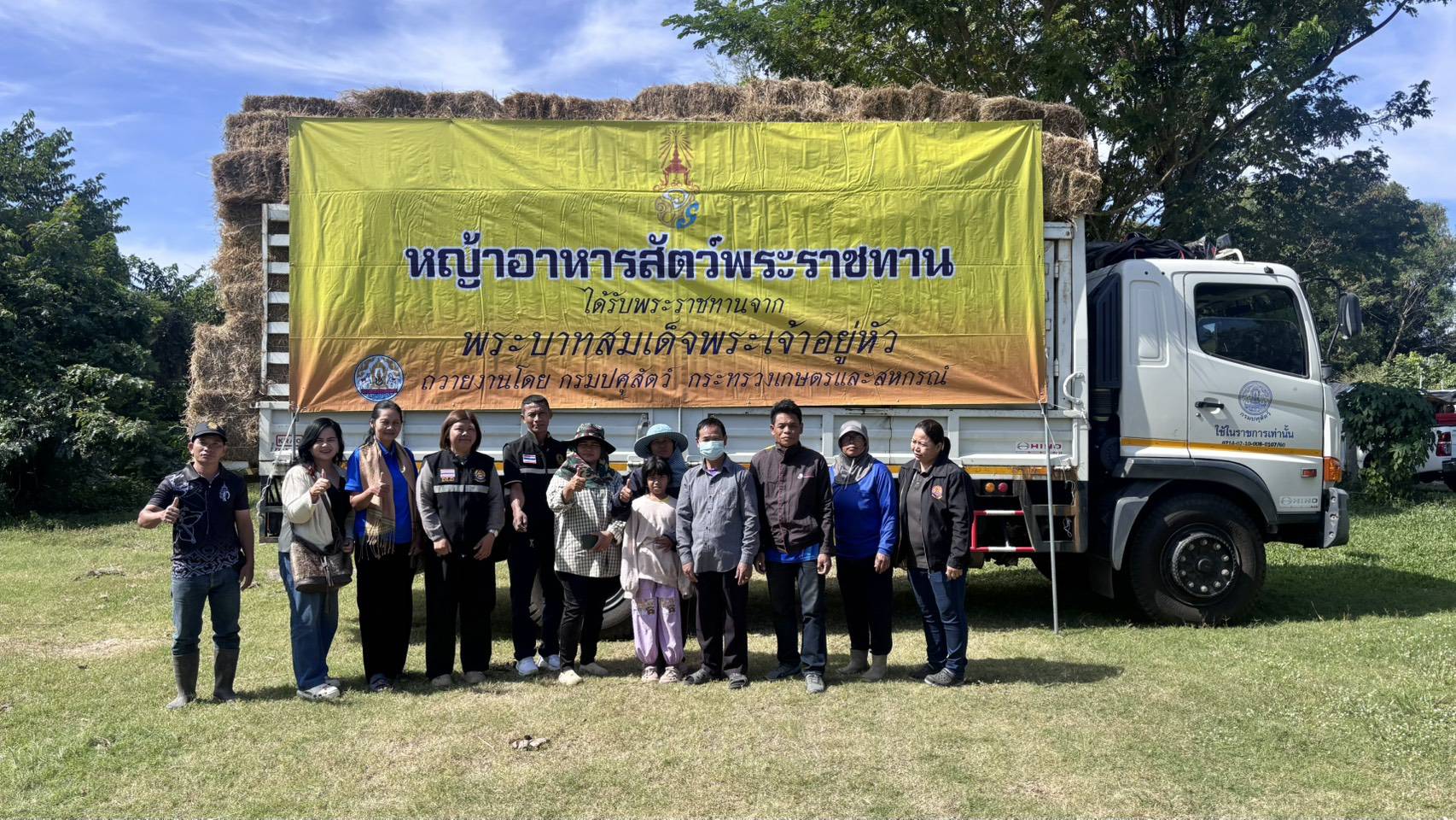 วันที่ 28 พฤศจิกายน 2568  น.สพ.อภิชัยนาคีสังข์ ปศุสัตว์จังหวัดสุรินทร์ บูรณาการร่วมกับหน่วยงาน DLD-C โดยนางสาวอรวิมล แก้วเกลี้ยง ผู้อำนวยการศูนย์วิจัยและพัฒนาอาหารสัตว์บุรีรัมย์ ได้ส่งมอบเสบียงอาหารสัตว์(หญ้าแห้ง)พระราชทาน จำนวน 250 ฟ่อน 5,000 กิโลกรัม มอบให้อำเภอปราสาท จำนวน  2 ตำบล ต.บ้านไทร ม.4,ม.7 ,ม.8 เกษตรกร 80 ราย  และ ต.โคกยาง ม.3,ม.4 เกษตรกร 10 ราย รวมเกษตรกรทั้งสิ้น 90 ราย  เพื่อช่วยเหลือเกษตรกรที่ได้รับผลกระทบด้านปศุสัตว์ จากโรคระบาดในสัตว์เลี้ยง